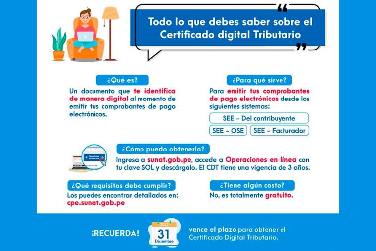 21/02/2022 Las micro y pequeñas Empresas (mypes), que a partir de abril tendrán la obligación de emitir facturas electrónicas, pueden implementar sus sistemas de emisión a menor costo utilizando el certificado digital tributario que la Superintendencia Nacional de Aduanas y de Administración Tributaria (Sunat) entrega gratis desde el 2020.